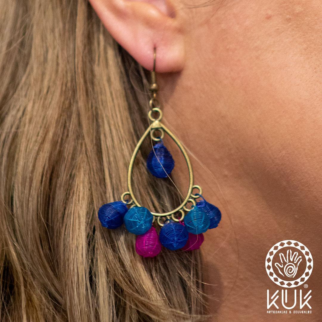 Aros crin globo, tejidos a mano por artesanas de Rari en la Región del Maule.