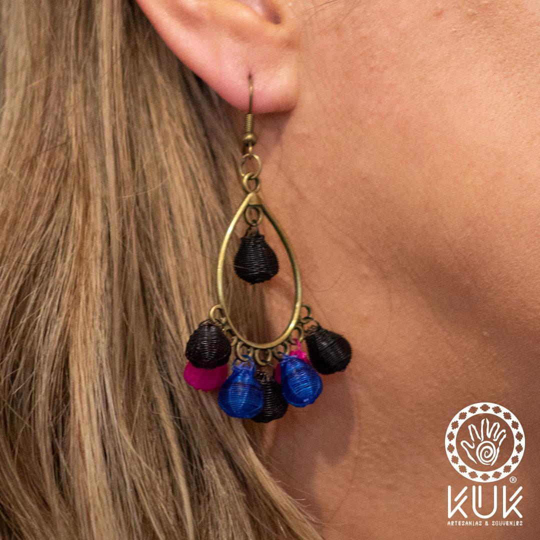 Aros crin globo, tejidos a mano por artesanas de Rari en la Región del Maule.