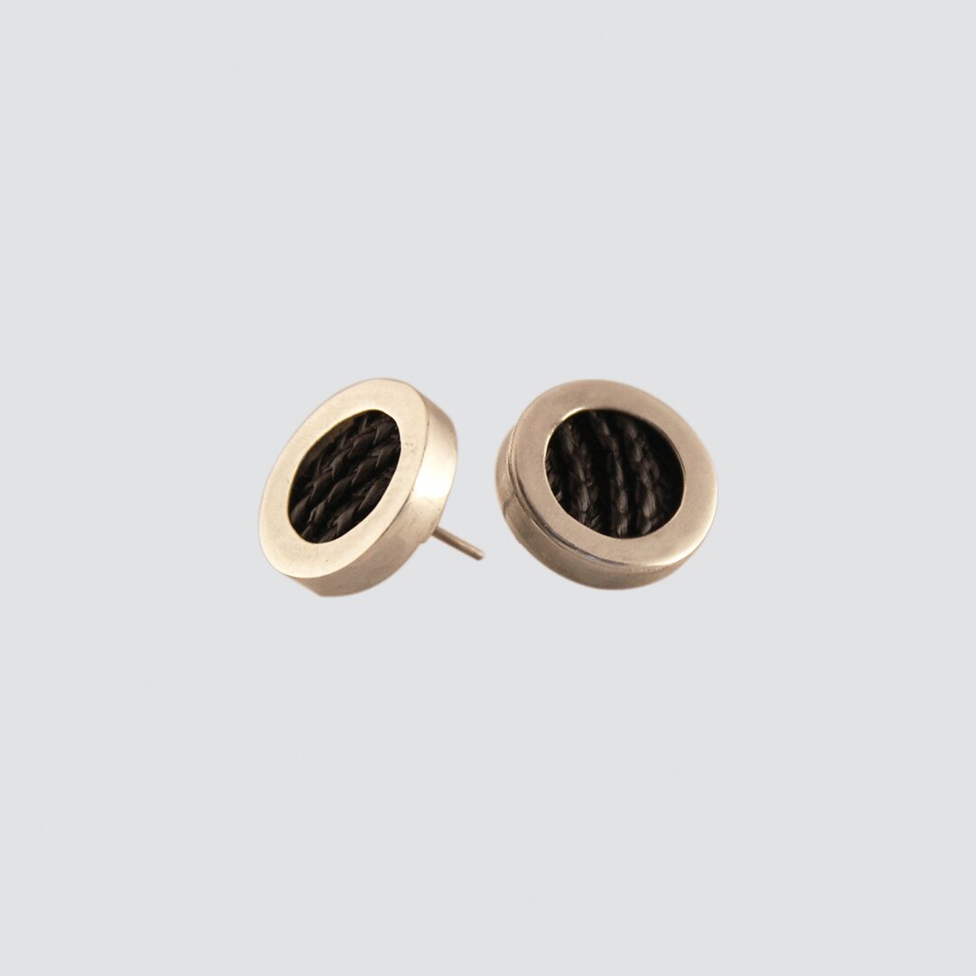 Aro de teatina con plata diseño botón. La teatina es la fibra vegetal que se teje a mano y con ella se fabrica la chupallas del huaso Chileno.