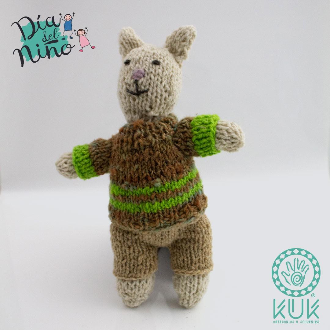 Conejo de lana teñido con vegetales y tejido a mano por la artesana maulina Laura Ramos, Sello de Excelencia del Consejo de la Cultura y la UNESCO.
