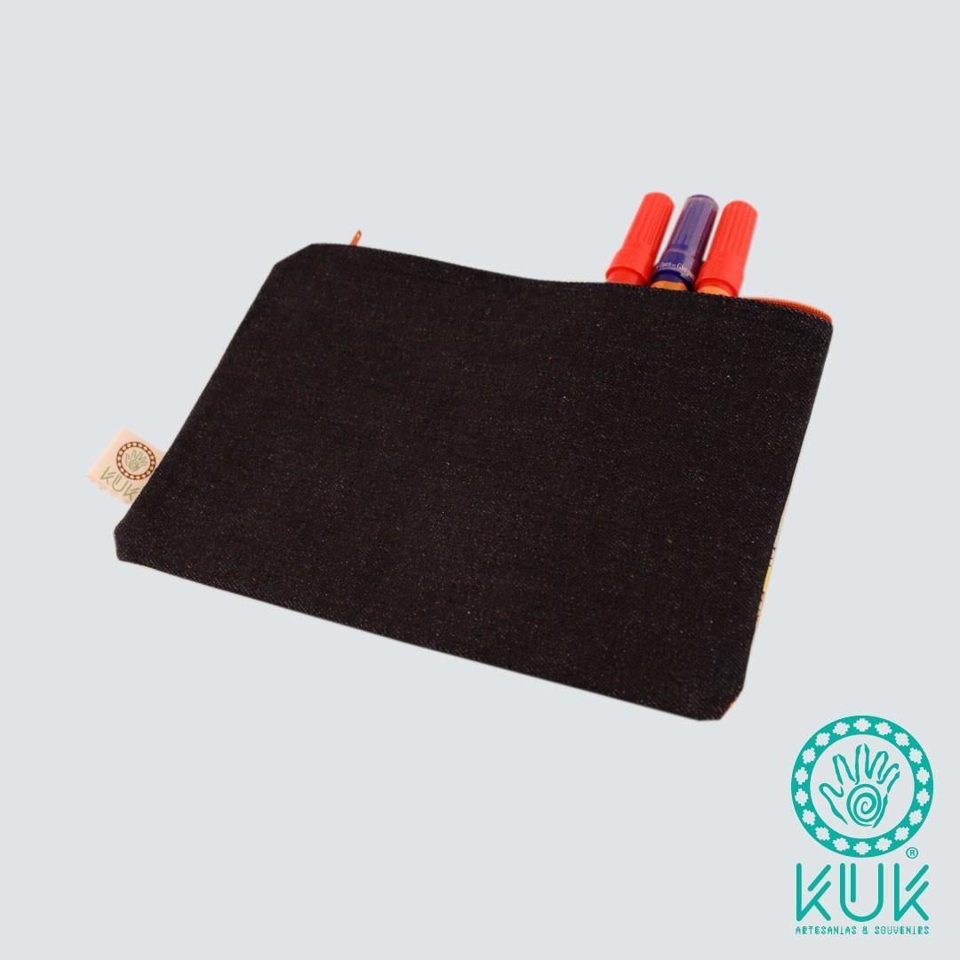 Estuche de tela crea cruda y mezclilla estampado con letras «Talca».