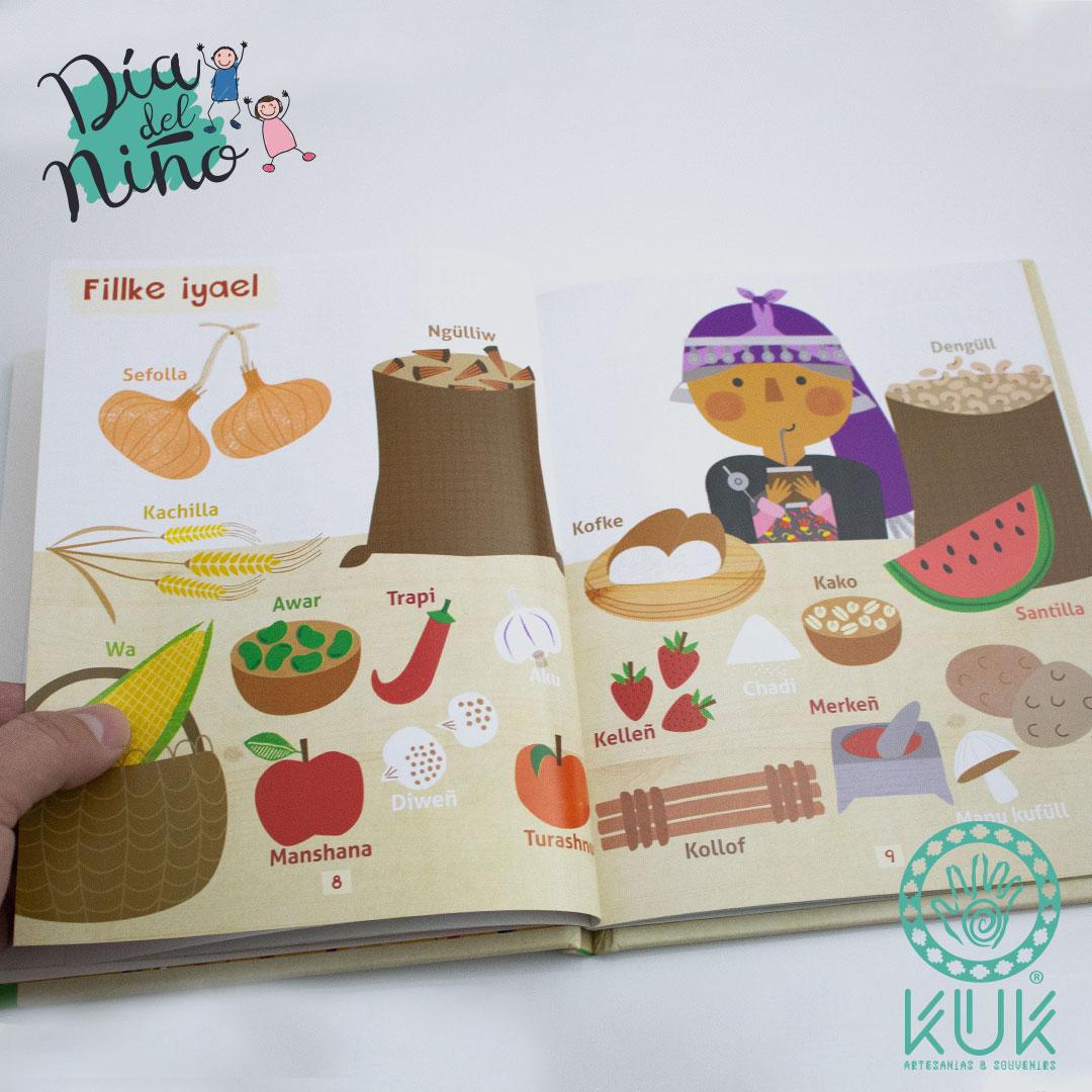 Más de 150 imágenes con su significado escrito en mapudungun, hacen de este diccionario un libro fundamental para iniciar a los pequeños en el aprendizaje del idioma de uno de los pueblos originarios de Chile. Contiene tópicos como: naturaleza, las estaciones del año, vestimenta, comidas, animales domésticos, enseres de casa, entre varios más.