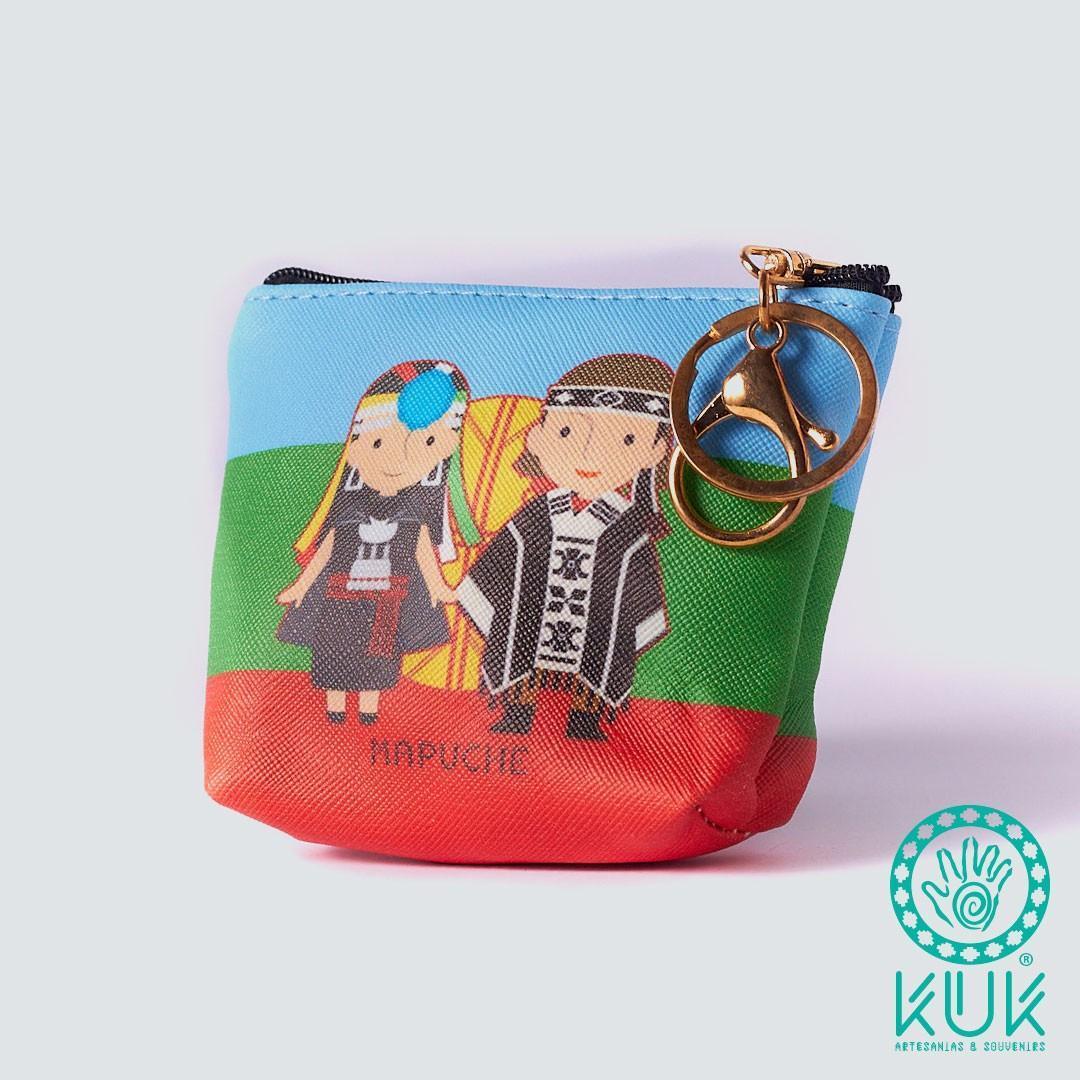 Monedero/llavero diseño pareja mapuche con cierre.