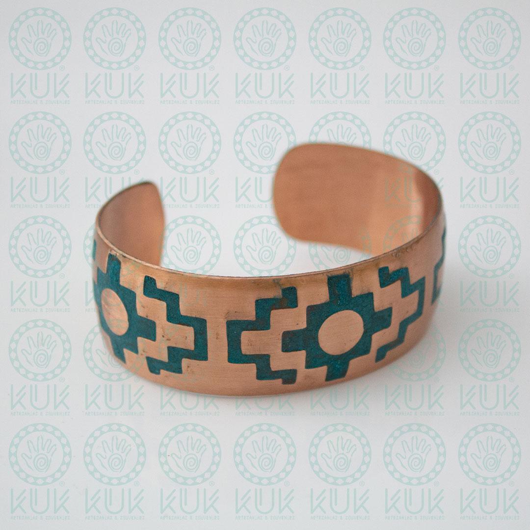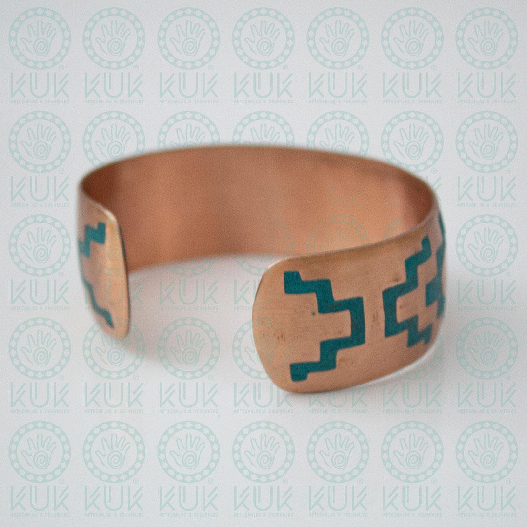 Pulsera de cobre con textura al ácido, diseño Mapuche. Hecho a mano.