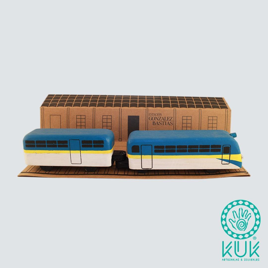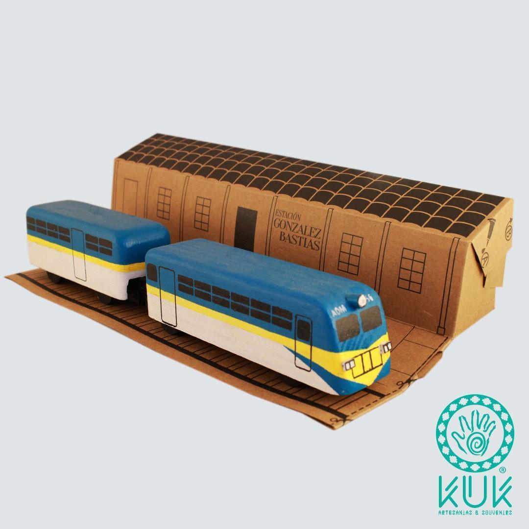 Ramal Talca – Constitución de madera, fabricado y pintado a mano. Con caja de cartón reciclado y estación González Bastías armable por el reverso de la caja.