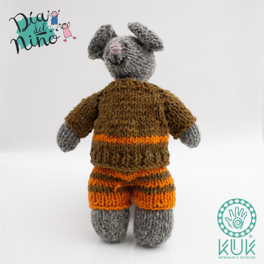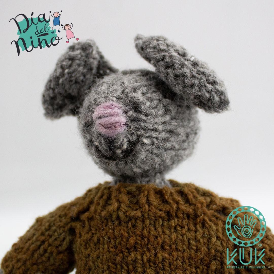 Muñeco de lana teñido con vegetales y tejido a mano por la artesana maulina Laura Ramos, Sello de Excelencia del Consejo de la Cultura y la UNESCO.