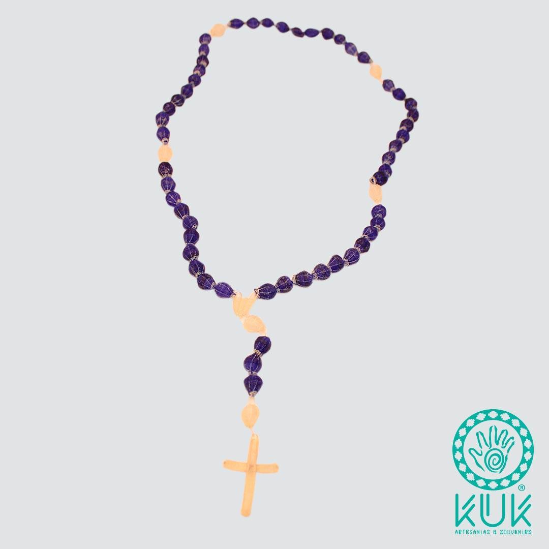 Rosario de crin tejido a mano por artesanas de Rari, región del Maule.