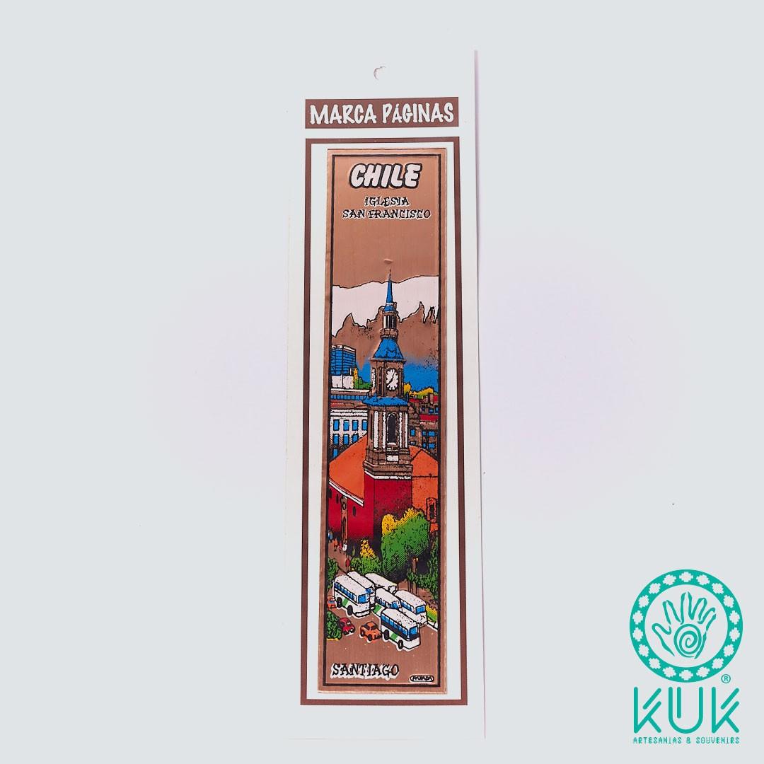 Separador de libro en cobre repujado con diseño de iglesia San Francisco de Santiago.