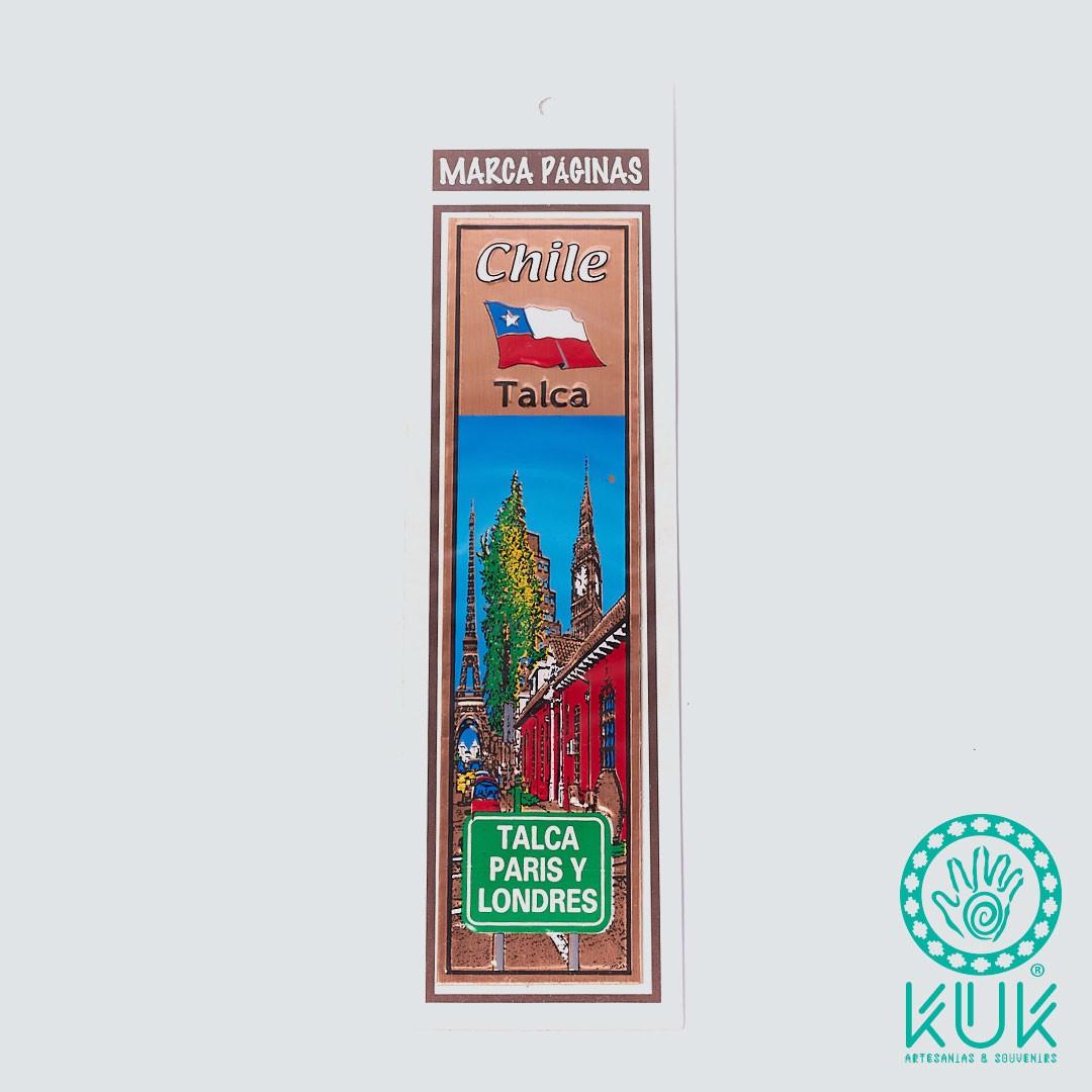 Separador de libro en cobre repujado con diseño Talca, París y Londres.